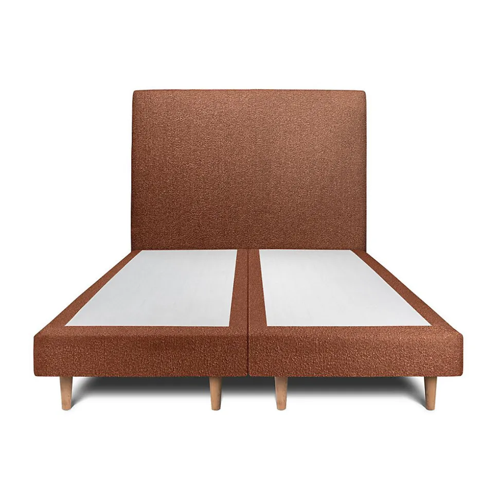 Lit avec tête de lit bouclette et sommier tapissier – Lit en bois massif