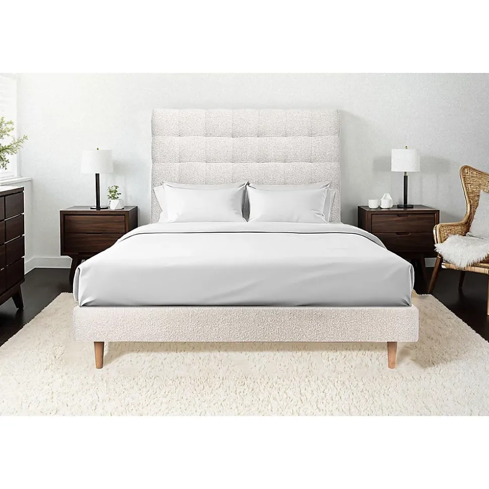Lit avec tête de lit capitonnée et sommier tapissier – Lit en bois massif