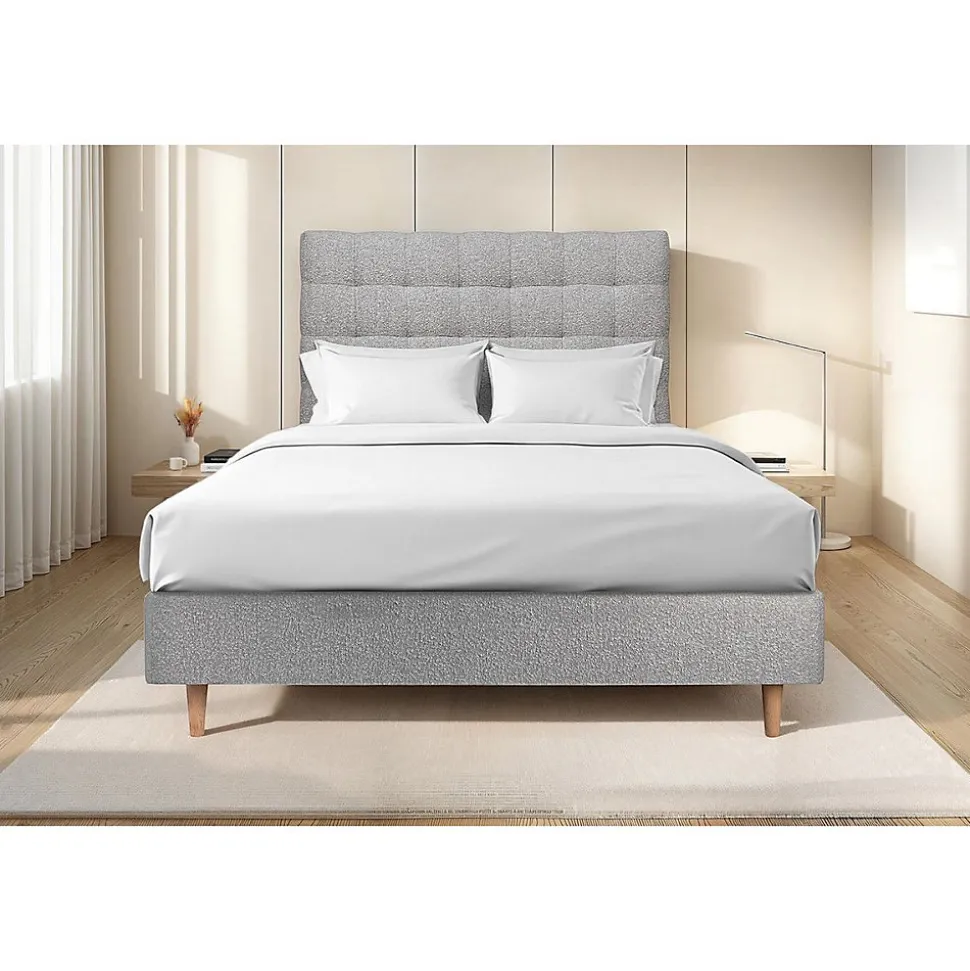 Le lit avec tete de lit capitonnée et sommier tapissier est moderne avec son large choix de tissus et de coloris. Il est robuste et durable grâce à sa structure renforcée de 20 cm d’épaisseur en bois massif. Lit : Sommier + tete de lit + piedsSommier tapissier livré assembléHauteur totale : 35cm Sommier 20cm + Pieds bois cone 15cm (fournis)Adapté pour tous types de matelasMulti 12 lattes en peuplier massifStructure et traverses de renfort en peuplier massifTissu Maille 100% polyester résistant certifié OEKO-TEX Standard 100Garnissage fibres 100% polyesterToile de fond 100% polyester anti-poussièresTete de lit capitonnée à poser au sol entre le sommier et le murHauteur : 120 cm, Epaisseur : 10cm Structure et traverses en pin massifGarnissage mousse polyuréthane 15 kg/m3 et fibres polyesterTissu Maille 100% polyester résistant certifié OEKO-TEX Standard 100