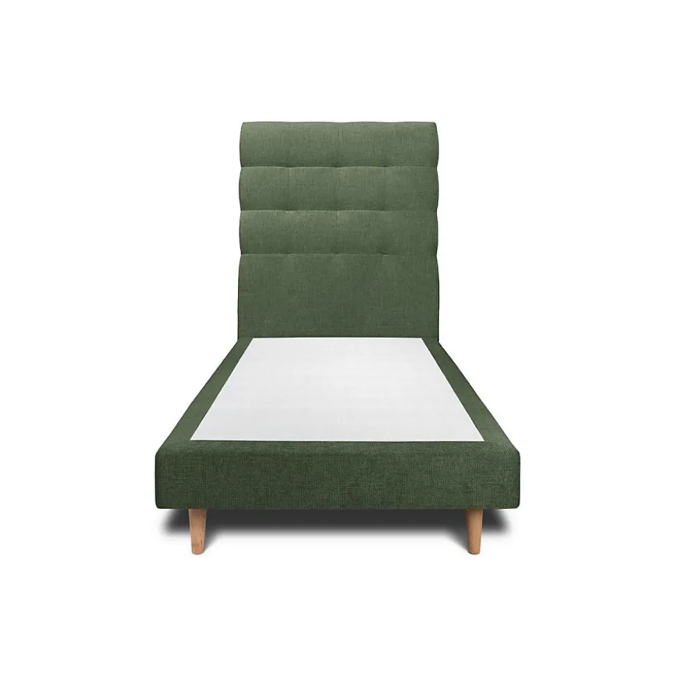 Lit avec tête de lit capitonnée tissu et sommier tapissier – Lit en bois massif