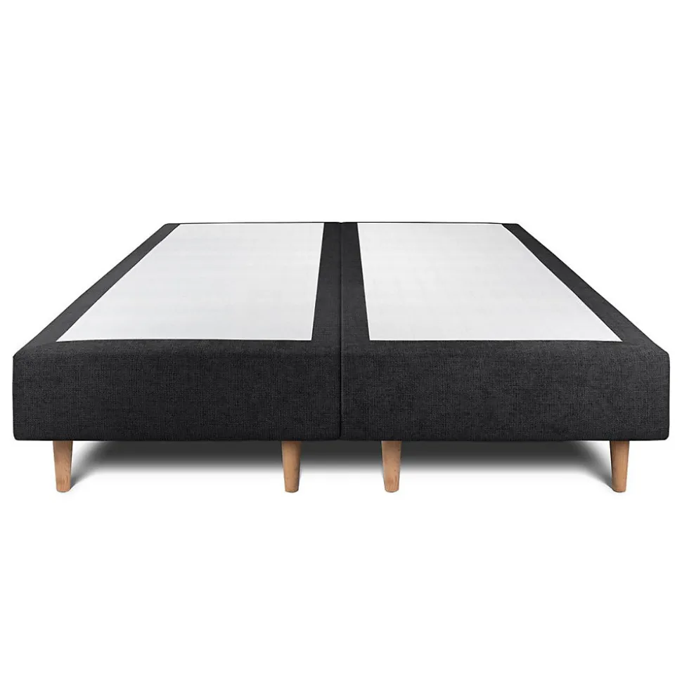 Lit avec tête de lit capitonnée tissu et sommier tapissier – Lit en bois massif