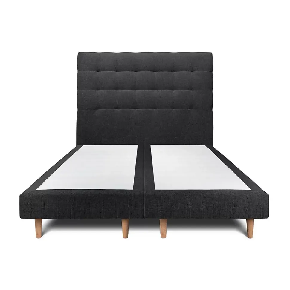 Lit avec tête de lit capitonnée tissu et sommier tapissier – Lit en bois massif