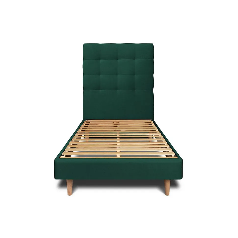 Lit avec tête de lit capitonnée velours et sommier kit – Lit en bois massif