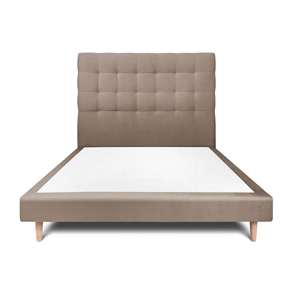 Lit avec tête de lit capitonnée velours et sommier – Lit en bois massif