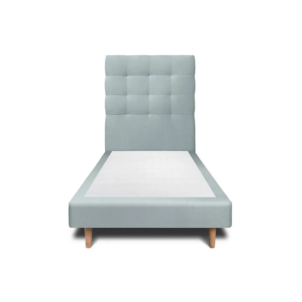 Lit avec tête de lit capitonnée velours et sommier – Lit en bois massif