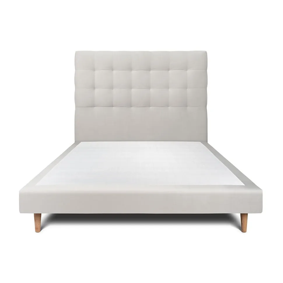 Lit avec tête de lit capitonnée velours et sommier - Lit en bois massif