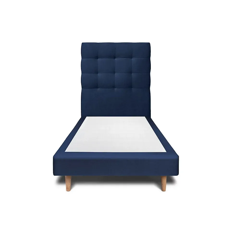 Lit avec tête de lit capitonnée velours et sommier – Lit en bois massif