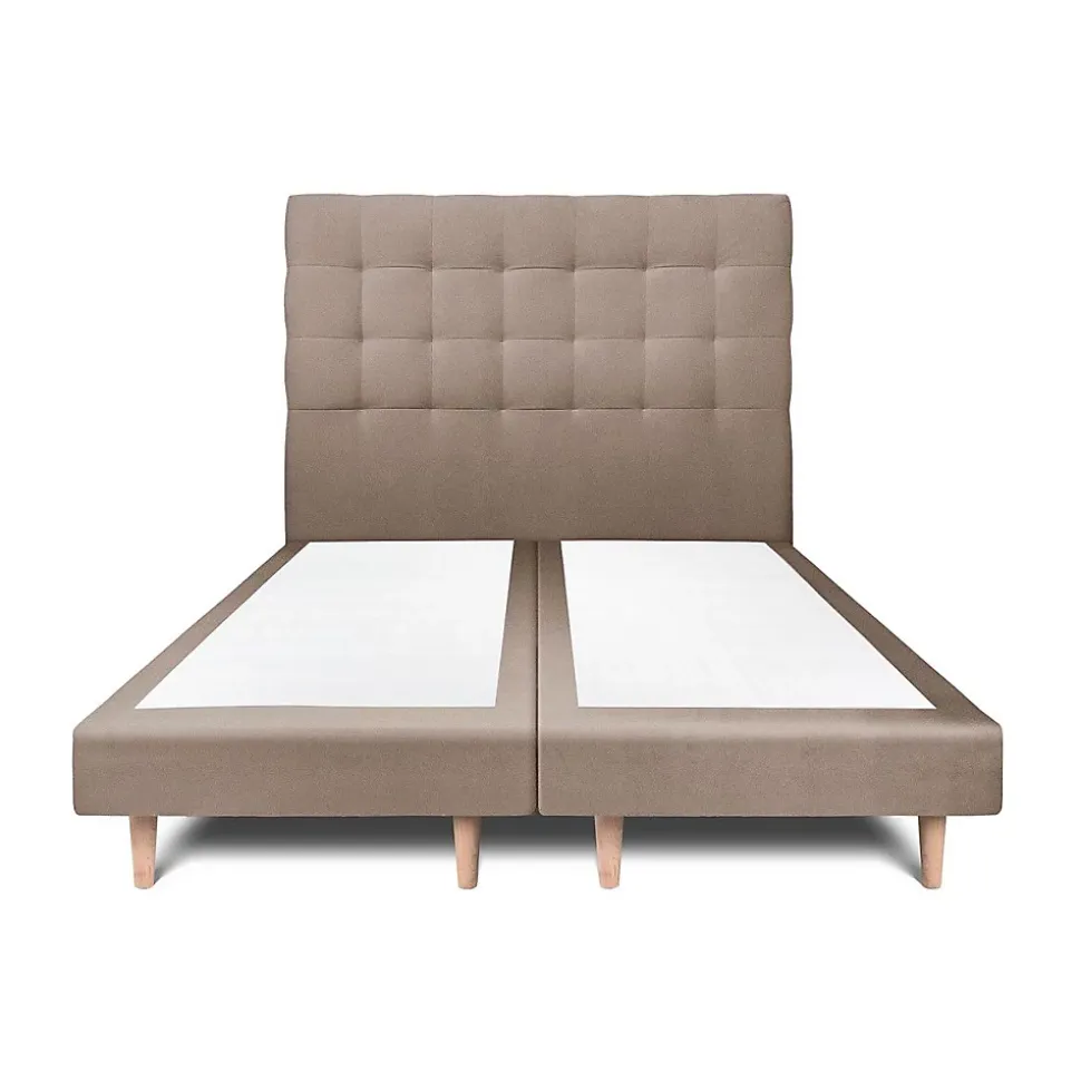 Lit avec tête de lit capitonnée velours et sommier – Lit en bois massif