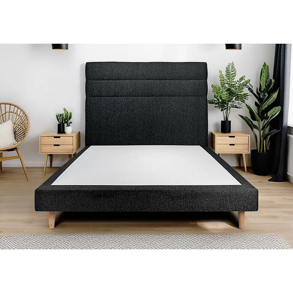 Lit avec tête de lit lignes bouclette et sommier tapissier – Lit en bois massif