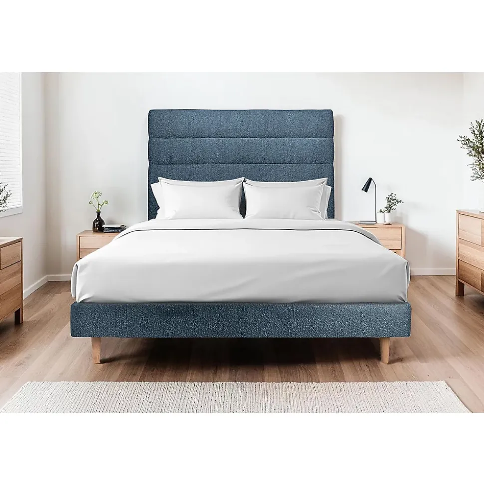 Lit avec tête de lit lignes bouclette et sommier tapissier – Lit en bois massif