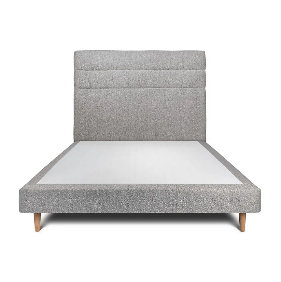 Lit avec tête de lit lignes bouclette et sommier tapissier – Lit en bois massif