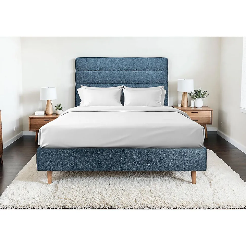 Le lit avec tete de lit lignes et sommier tapissier est moderne avec son large choix de tissus et de coloris. Il est robuste et durable grâce à sa structure renforcée de 20 cm d’épaisseur en bois massif. Lit : Sommier + tete de lit + piedsSommier tapissier livré assembléHauteur totale : 35cm Sommier 20cm + Pieds bois cone 15cm (fournis)Adapté pour tous types de matelasMulti 12 lattes en peuplier massifStructure et traverses de renfort en peuplier massifTissu Maille 100% polyester résistant certifié OEKO-TEX Standard 100Garnissage fibres 100% polyesterToile de fond 100% polyester anti-poussièresTete de lit rembourrée Bandes Horizontales à poser au sol entre le sommier et le murHauteur : 120 cm, Epaisseur : 10cm Structure et traverses en pin massifGarnissage mousse polyuréthane 15 kg/m3 et fibres polyesterTissu Maille 100% polyester résistant certifié OEKO-TEX Standard 100