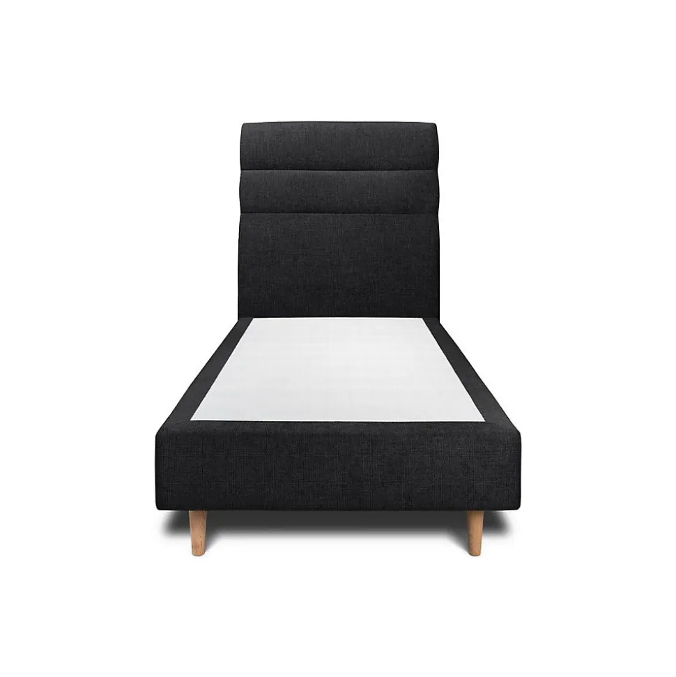 Lit avec tête de lit lignes tissu et sommier tapissier – Lit en bois massif