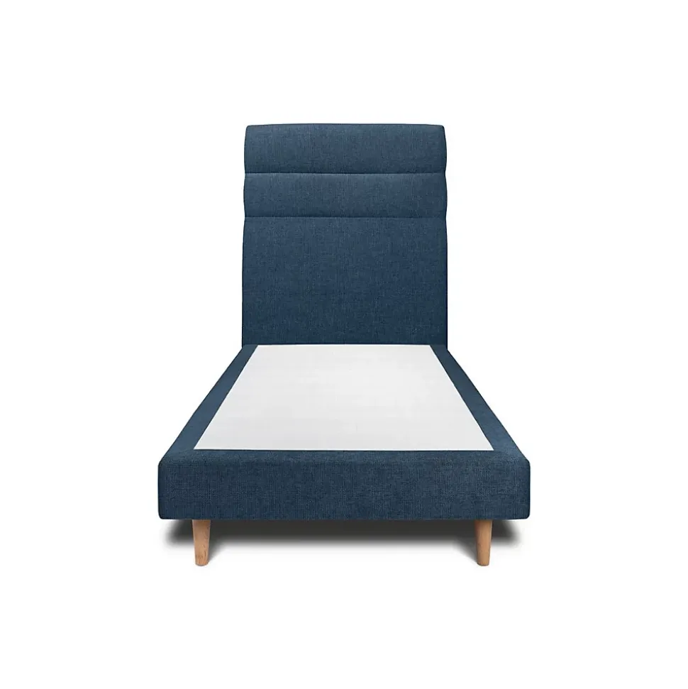 Lit avec tête de lit lignes tissu et sommier tapissier – Lit en bois massif