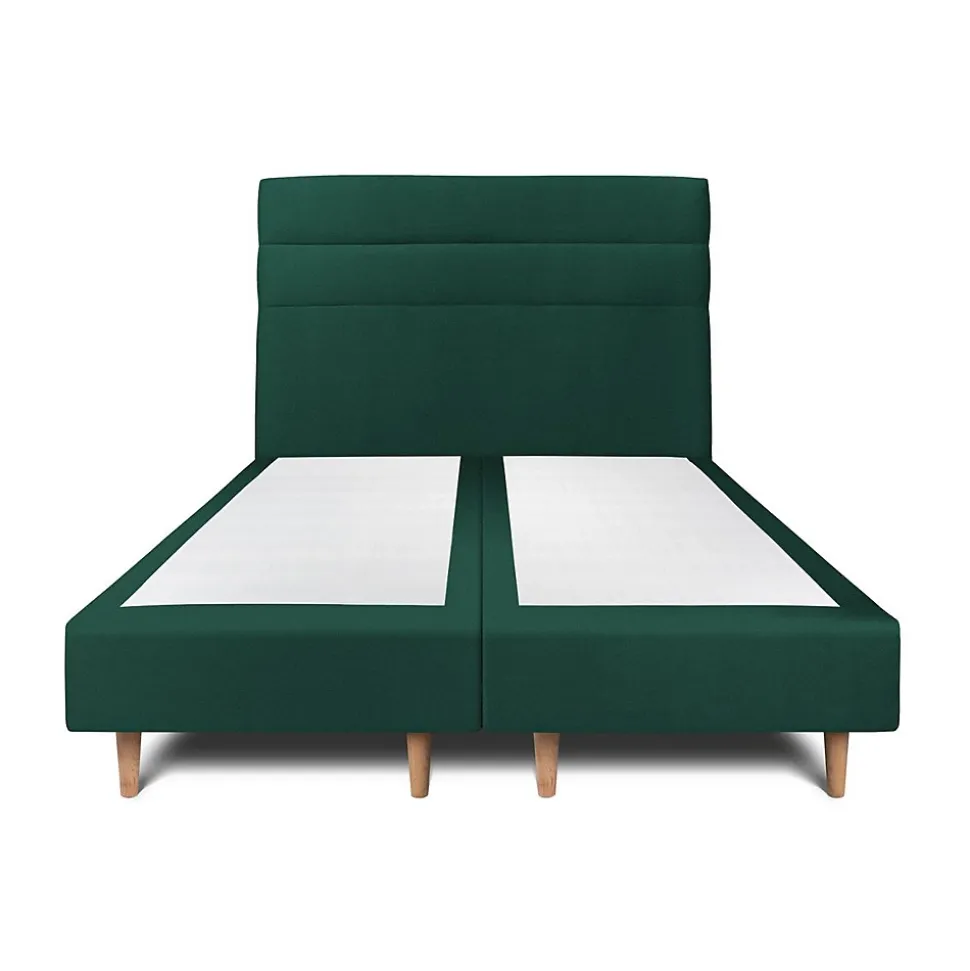 Lit avec tête de lit lignes velours et sommier tapissier – Lit en bois massif