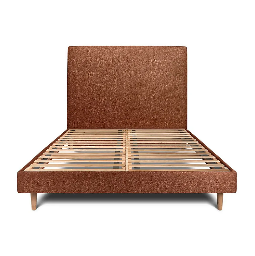 Lit avec tête de lit tapissier bouclette et sommier kit – Lit en bois massif