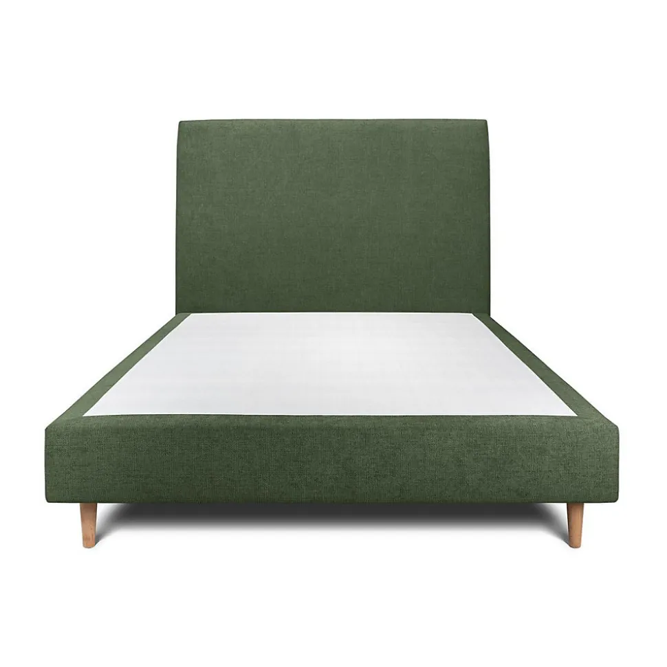 Lit avec tête de lit tapissier tissu et sommier tapissier – Lit en bois massif
