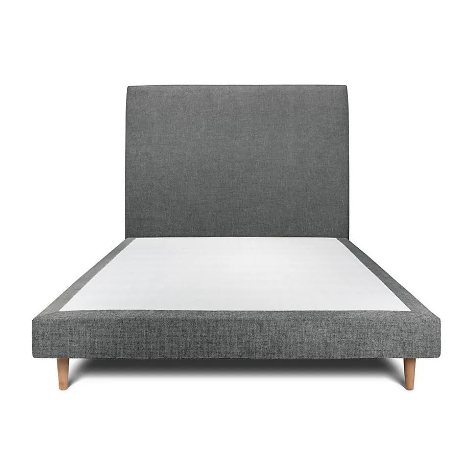 Lit avec tête de lit tapissier tissu et sommier tapissier – Lit en bois massif
