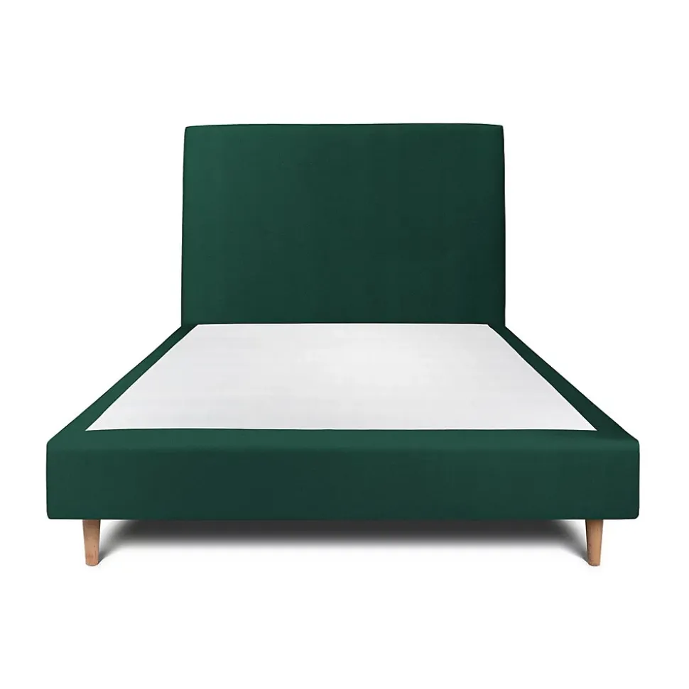 Lit avec tête de lit tapissier velours et sommier tapissier - Lit en bois massif