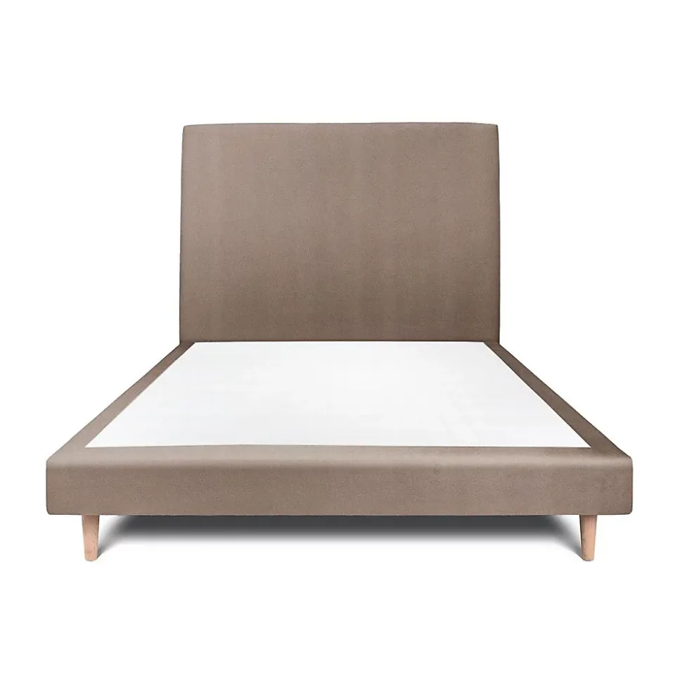 Lit avec tête de lit tapissier velours et sommier tapissier - Lit en bois massif