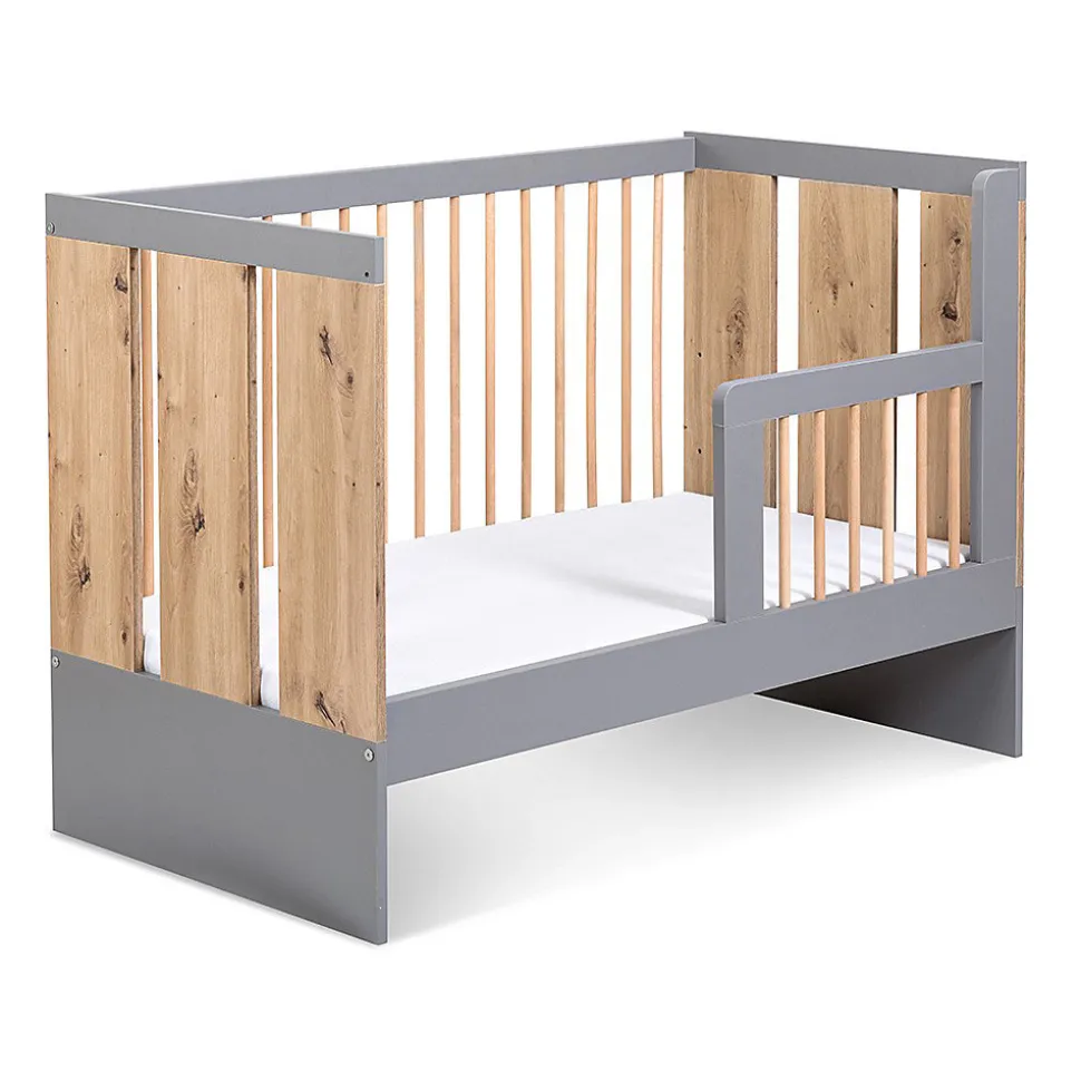 PAULINE Lit bébé enfant 120 x 60 avec sommier réglable Dès la naissance. CARACTÉRISTIQUES : Ce lit séduit par son style qui allie rustique et moderne. Ce lit s’adapte à la croissance de l’enfant grâce à son sommier réglable sur 3 hauteurs. 3 barreaux sont amovibles sur un des côtés afin que l’enfant puisse se coucher et se lever en toute liberté. Lorsque votre enfant grandit, vous pouvez remplacer un côté du lit par une barrière de sécurité incluse. Fabriqué en bois de pin et MDF. Peinture à l’eau. Fabriqué en Union Européenne. À monter. Matelas non inclus. DIMENSIONS ET POIDS : Dimensions extérieures du lit : L 124 cm x l 66 cm x H 85 cm. Dimensions intérieures du lit : L 120 cm x l 60 cm. Poids : 22 kg. À NOTER : pas de livraison en Corse ou sur les îles.