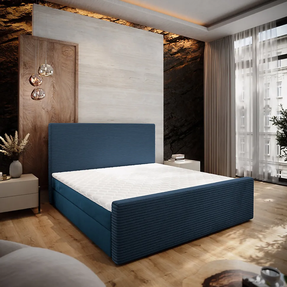 - Design élégant et contemporain – Le lit continental Classique séduit par son style raffiné et sa finition soignée. Son revêtement en tissu Tkanina pluszowa de type KRONOS et sa couleur Bleu s’intègrent parfaitement à tout type d’intérieur.