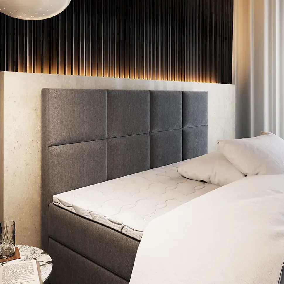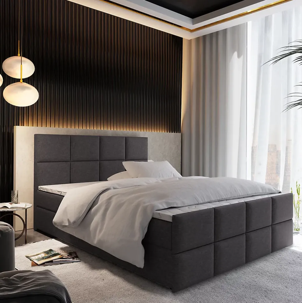- Design élégant et contemporain – Le lit continental Classique séduit par son style raffiné et sa finition soignée. Son revêtement en tissu Tkanina plecionka de type SAWANA et sa couleur Gris s’intègrent parfaitement à tout type d’intérieur.