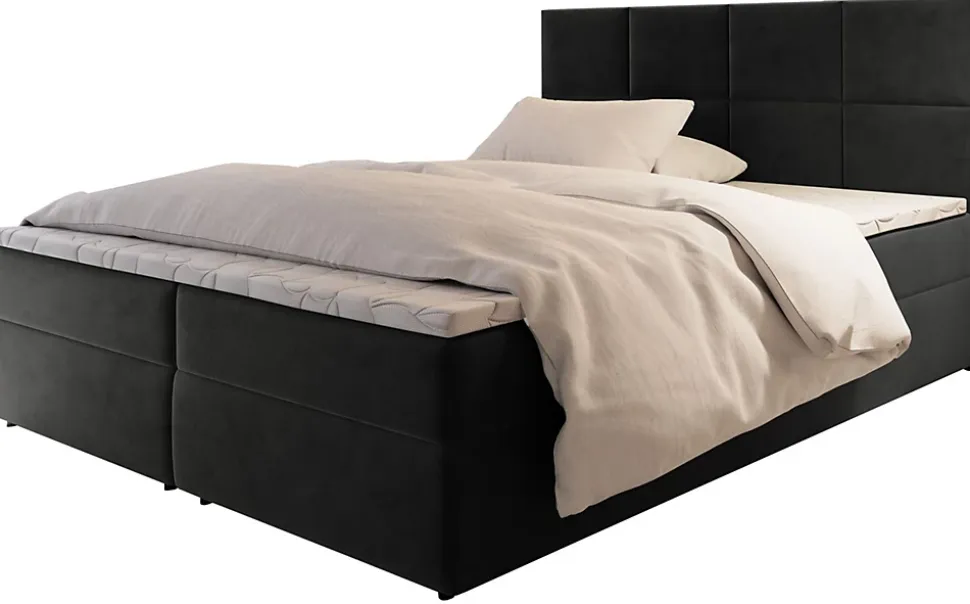 Lit Masseno LENA 160×200 cm – Confort et FonctionnalitéLe lit LENA est la combinaison parfaite d’une élégance intemporelle et d’une ergonomie pensée pour votre bien-être. Ce modèle offre non seulement un design soigné, mais aussi une fonctionnalité maximale grâce à ses espaces de rangement et son confort de couchage supérieur.Caractéristiques principales : Matelas à ressorts Bonell : Assure un soutien progressif qui s’adapte dynamiquement au poids du corps. La structure garantit une ventilation optimale et une isolation phonique pour un sommeil sain et calme. Confort accru (Surmatelas) : Le lit est équipé d’un surmatelas qui rend la surface de couchage plus douce, améliorant considérablement la qualité de votre repos. Grands coffres de lit : Fabriqués en panneau stratifié robuste, ils offrent un vaste espace pour votre literie. L’accès est facilité par un mécanisme d’ouverture assistée qui réduit l’effort de levage. Construction solide : Le cadre en bois massif et panneau de particules assure la stabilité du lit et empêche le matelas de glisser. Montage simple : Assemblage rapide et sans effort grâce au système de crochets métalliques. Dimensions : Longueur totale : 207 cm Largeur totale : 160 cm Hauteur de la tête de lit : 98 cm Hauteur d’assise avec surmatelas : 49 cm Hauteur des pieds : 2 cm Dureté du matelas : H2/H3 Surface de couchage : 160×200 cm