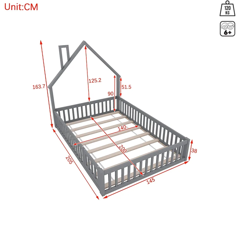 ▶ ▶ Détails ▶────────────────● Nom du produit : Lit enfant● Matériau du lit : Pin + MDF● Taille du lit : 140 x 200 cm (sans matelas)● Couleur : Gris● Nombre de colis : 1● Montage nécessaire : Oui● Dimensions du produit : 205 x 145 x 163.7 cm● Dimensions intérieures du lit : 140 x 200 cm● Hauteur totale : 163.7 cm● Capacité de poids : 120 kg● Nombre de lattes : 8 pièces● Épaisseur recommandée du matelas : 15-20 cm (sans matelas)► Remarques ►※ En raison de mesures manuelles, un écart de 2 à 3 cm peut se produire.※ En raison de l’éclairage, il peut y avoir des différences de couleur entre l’image du produit et le produit réel. Veuillez vous référer au produit que vous avez effectivement reçu.※ Si vous avez des questions lors de l’installation, veuillez nous contacter dès que possible.
