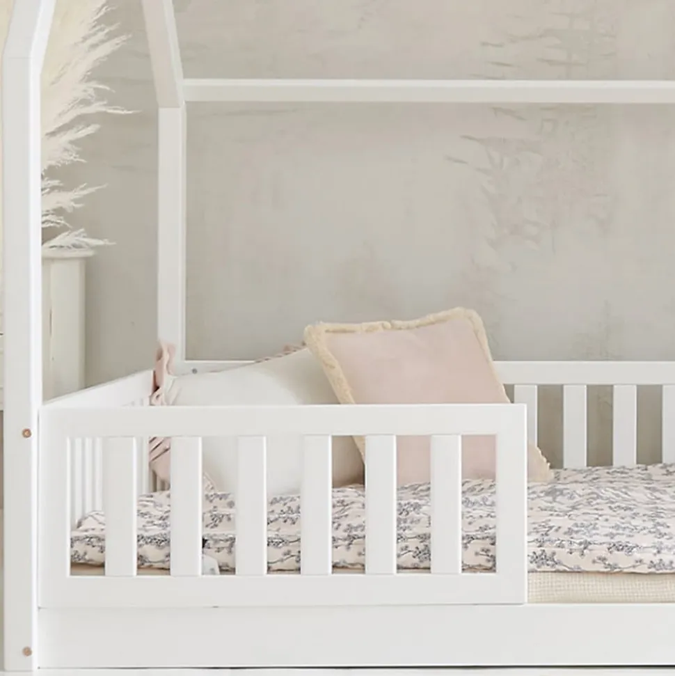 Lit cabane 140×200 barrières et sommier inclus pieds 1 cm Daisy Blanc