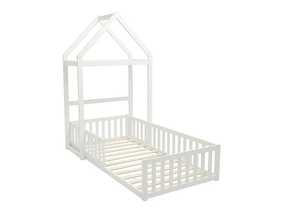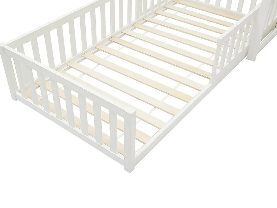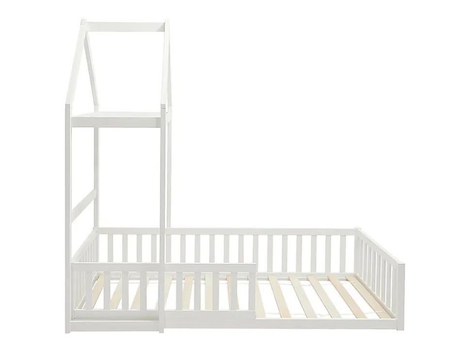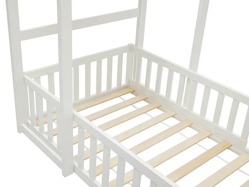 Apportez une touche de magie à la chambre avec le lit cabane. Son design élégant et chaleureux offre à la fois confort et style. Un véritable havre de paix pour vos enfants, signé VARLAINE ! Caractéristiques Couleur (nuance) : Blanc Matière (précision) : Mdf, Pin Epaisseur bois : 40 mm Finition : Vernis Taille (couchage) : 90 x 190 cm Nombre de places : 1 place Sans matelas Avec sommier Type de sommier : Cadre à lattes Charge maximale supportée : 120 kg À monter soi-même : Ce lit est compatible avec tous les matelas 90 x 190 cmDimensions Longueur : 196.2 cm Hauteur : 187 cm Profondeur : 96.5 cm Hauteur de couchage : 39.5 cmLivraisonLors de la livraison, il est conseillé de vérifier que le bon nombre de colis a été livré.ColisColis n°1 : Longueur 196 cm, Largeur 55 cm, Hauteur 14 cm, Poids 25 kg. Colis n°2 : Longueur 105 cm, Largeur 29 cm, Hauteur 14 cm, Poids 10 kg.