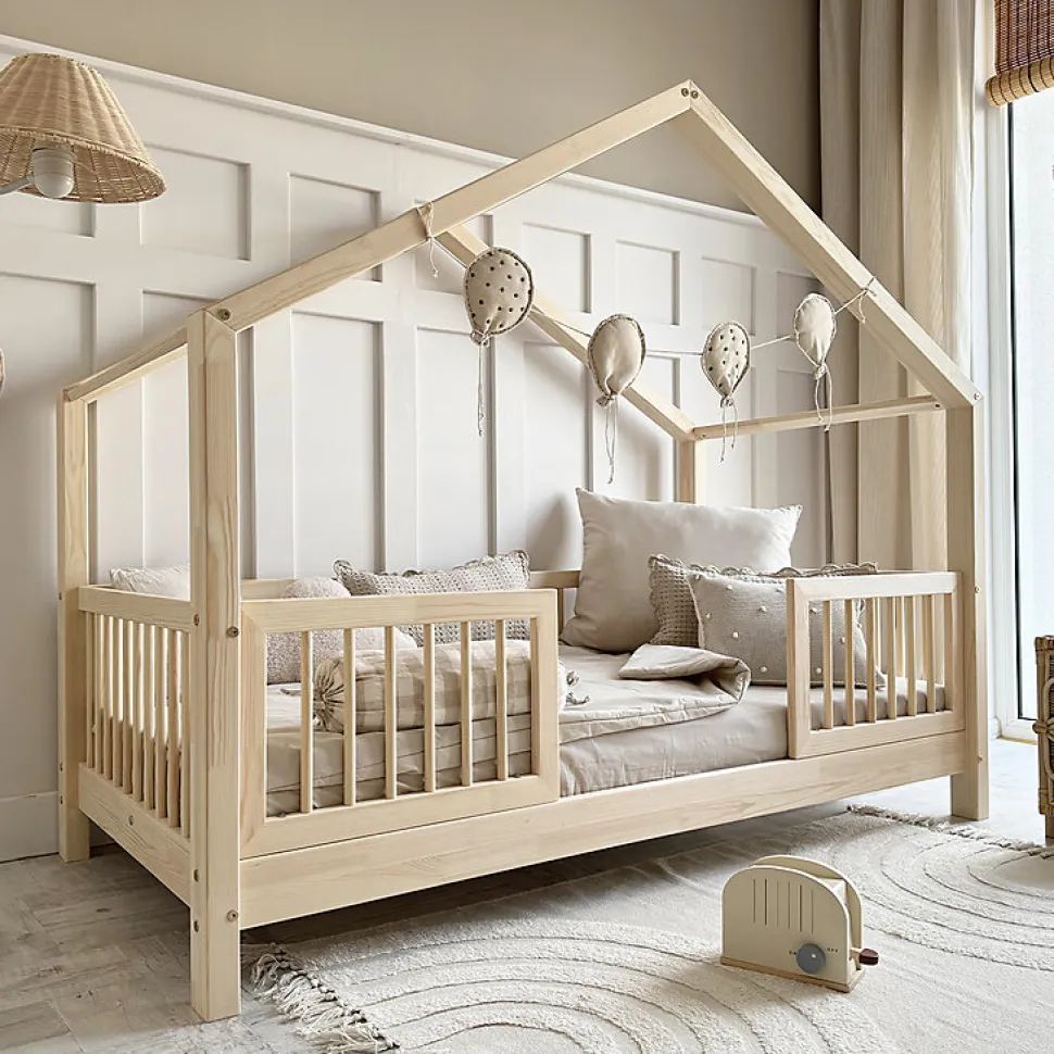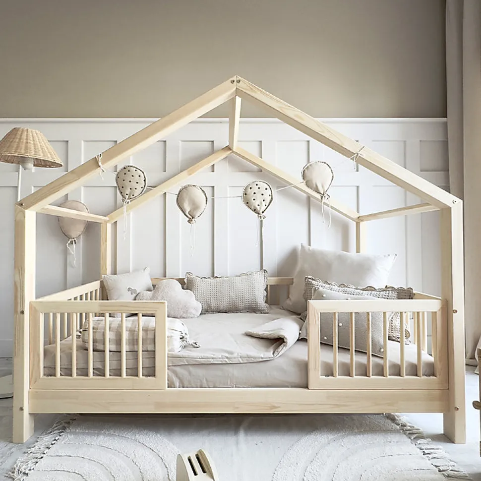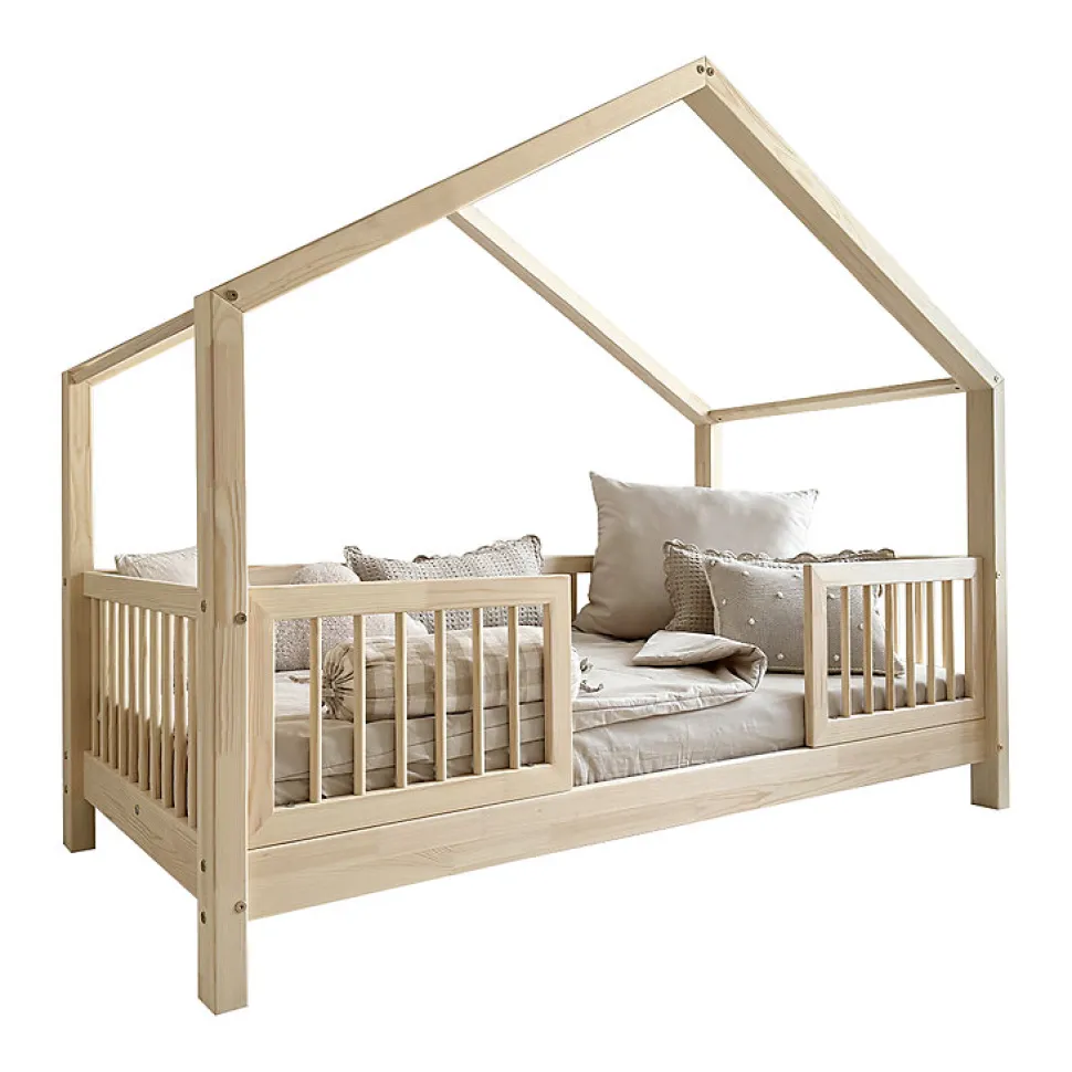 Lit cabane 90×200 barrières et sommier inclus pieds 10 cm Rosalie Bois