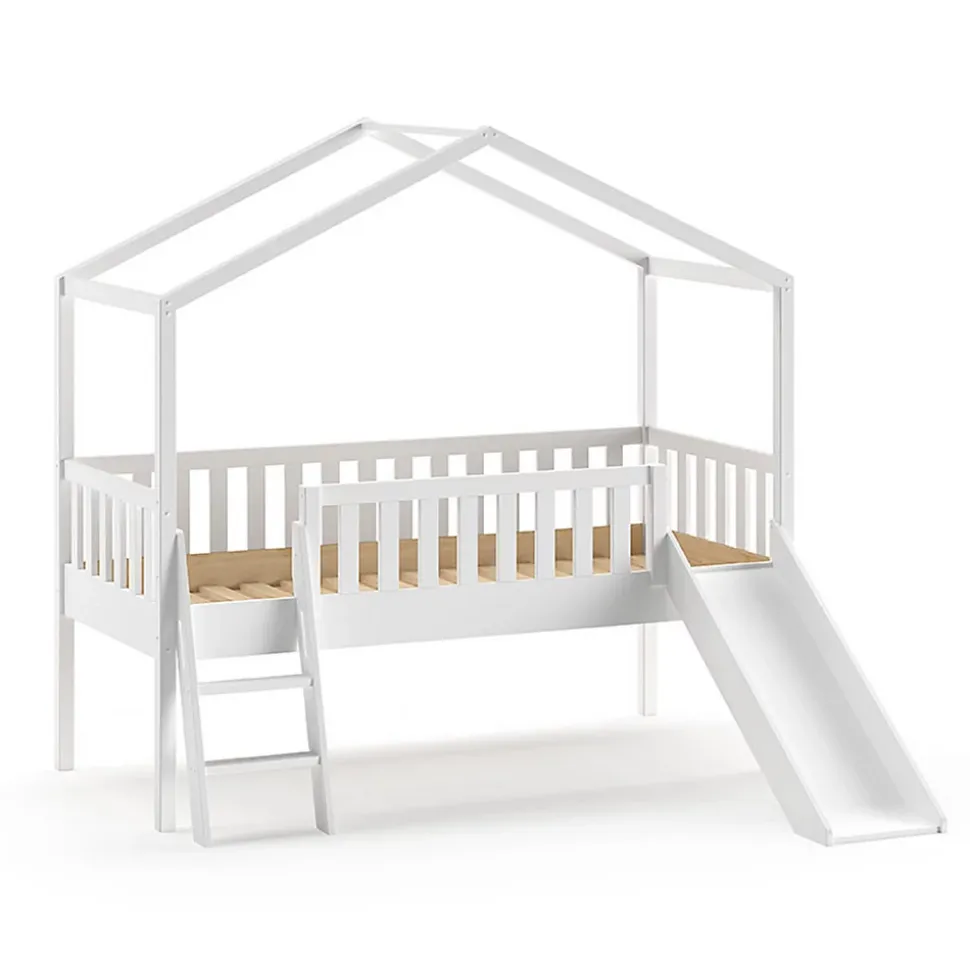 Lit cabane 90×200 toboggan Vipack Dallas Blanc