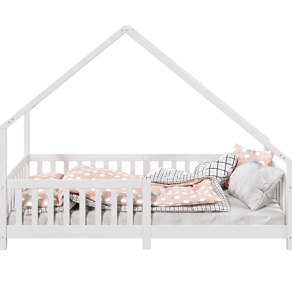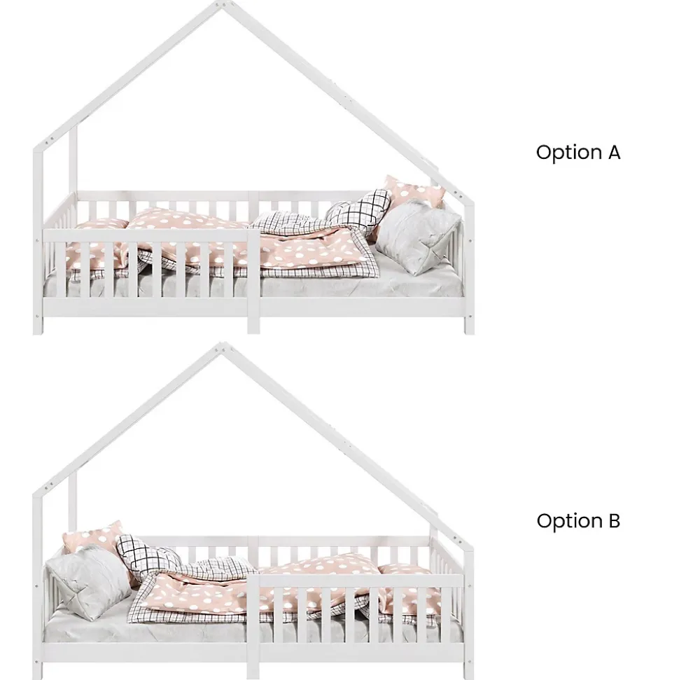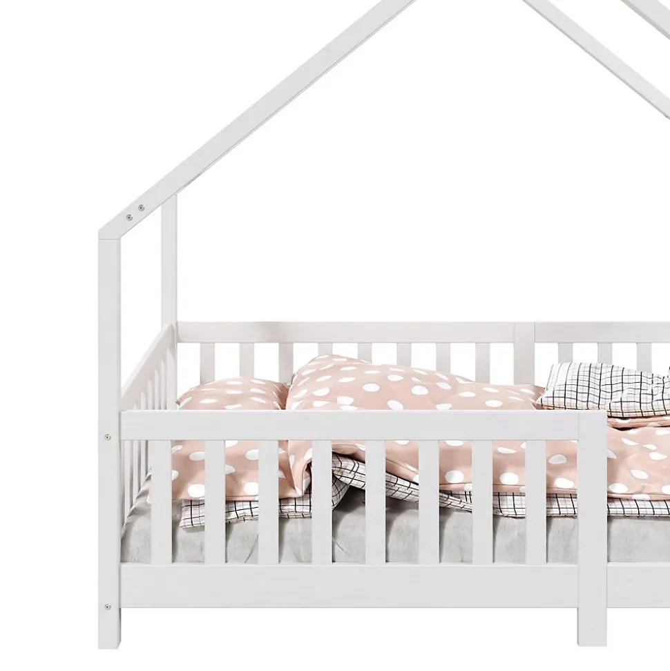 Le lit cabane Cora … deviendra rapidement l’endroit favori de votre enfant, que ce soit en journée pour y jouer ou la nuit pour y dormir paisiblement. Avec son design asymétrique, ce lit maisonnette pourra convenir à tous les espaces même mansardés. Sa structure proche du sol permettra à votre enfant d’entrer et sortir facilement du lit en toute autonomie. De plus les barrières de protection assurent sa sécurité durant son sommeil. Vous pourrez également y ajouter de la déCoration, guirlandes ou voilages, pour en faire un lieu confortable ! Description des matériaux : – La structure du lit est en pin massif et recouvert d’une lasure de coloris blanc. – La madrure du bois reste visible. Caractéristiques du produit : – Couchage: 90 x 190 cm – Position de la barrière modulable (droite ou gauche) – Sans sommier et sans matelas – Barre de renfort Livraison et montage : – Contenu de la livraison : Cadre de lit, sans déCoration, notice de montage – Le produit est livré en pièces détachées – Assemblage facile grâce à la notice – Sans sommier et sans matelas – Photo non contractuelle Résumé: – Dimensions pieds: 42 x 42 mm – Hauteur cadre de lit: 9 cm – Convient uniquement avec: Sommier fagot à lattes – Sommier: vendu séparément – Surface: Lasuré, La madrure du bois reste visible – Dimensions monté: 158 x 96 x 196 cm (H x L x L) – Couchage: 90 x 190 cm – Couleur: Blanc – Matériel: Pin massif