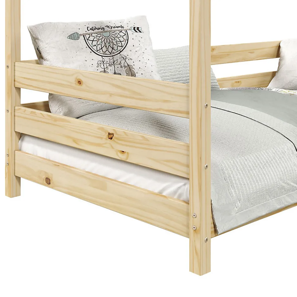 - Ce lit est fabriqué en pin massif à la finition naturelle, où la madrure du bois reste visible