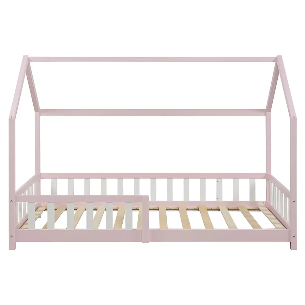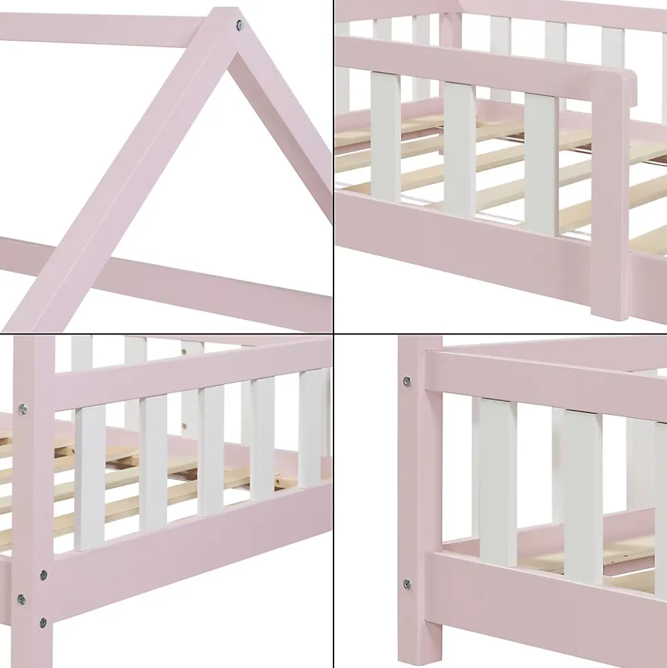 Lit enfantTransformez la chambre de votre enfant en un petit paradis accueillant pour dormir et jouer avec notre lit cabane en bois naturel. équipé d’une barrière protectrice à la fois décorative et utile, votre enfant sera toujours en sécurité pendant son sommeil. Avec son toit en forme de maison, il crée instantanément une ambiance cocooning. Qu’il s’agisse d’une chambre au design moderne ou classique, notre lit pour enfant s’adapte à tous les styles d’intérieur.Description :- lit cabane en forme de maison- s’adapte à différents styles de décoration- barrière protectrice pour un sommeil tranquille- construction robuste et montage facile- capacité de charge : 120 kgMatière :- cadre du lit : bois de pin- sommier : contreplaquéDimensions :- totales (longueur x largeur x hauteur) : 205 x 96 x 143 cm- surface de couchage (longueur x largeur) : 200 x 90 cm- distance entre le sol et le bas du toit : 94 cm- largeur de l’ouverture de la barrière : 97 cm- hauteur de la barrière : 40 cm- hauteur du pied : 5,5 cmCouleur :roseContenu de la livraison :1 x lit enfant1 x sommier à lattes standard (modèle simple)A noter :Le matelas, l’oreiller, la couverture et tous les autres objets de décoration ne font pas partie de l’offre.Produit de la marque :[en.casa]