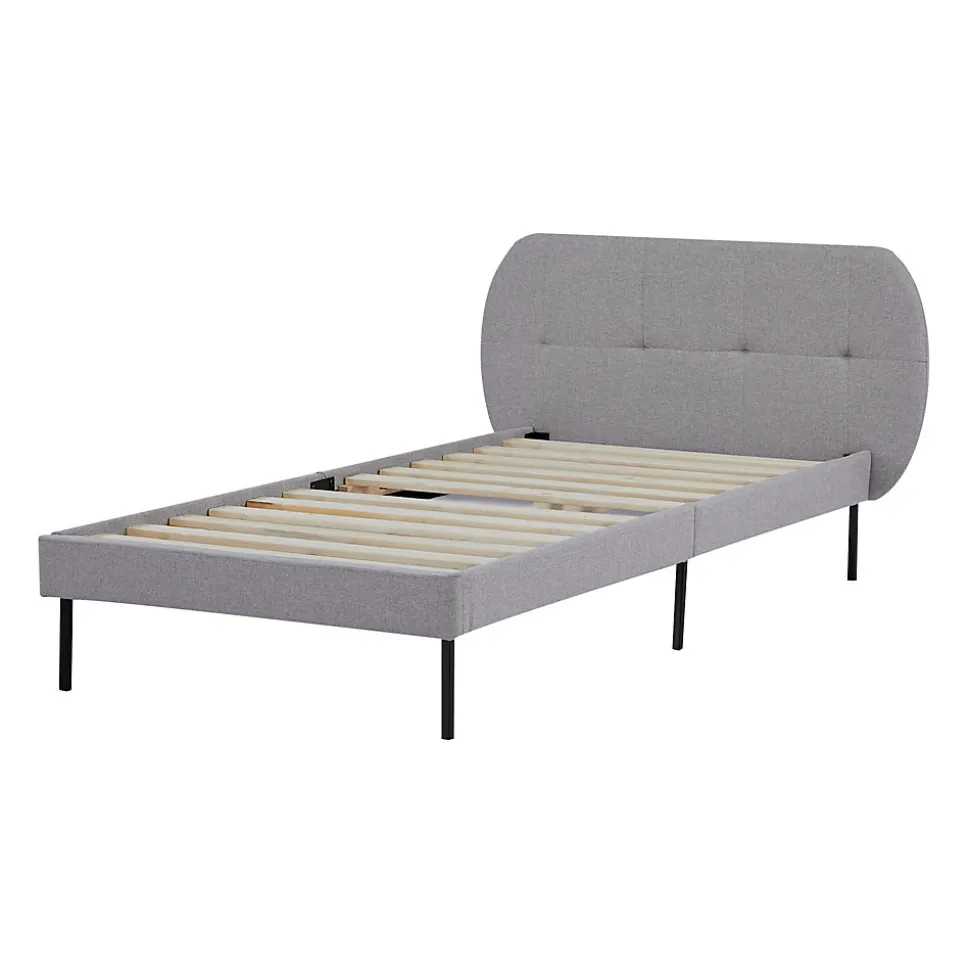 Lit capitonnéApportez une touche de charme et de confort à votre chambre avec ce cadre de lit élégant.Doté d’une tête de lit rembourrée pour un confort accru et d’un sommier à lattes robuste, il assure une base solide pour le matelas. La hauteur des pieds permet un rangement pratique de coffres ou autres objets sous le lit.Points forts :- lit simple sobre et élégant- convient à différents styles d’aménagement- stabilité assurée gâce à 6 pieds robustes- espace de rangement sous le lit- tête de lit rembourrée- montage rapide et facile- capacité de charge 110 kgMatière :- structure : bois de pin- sommier : contreplaqué- rembourrage : mousse (100% polyuréthane)- housse : tissu (100% polyester)Dimensions :- totales (lo x la x ha) : 207 x 124 x 83 cm- surface de couchage (lo x la) : 200 x 90 cm- hauteur des pieds : 22 cmPropriétés :- solidité des couleurs au frottement : 4-5 (très bonne)- solidité des couleurs à la lumière : supérieure à 5 (excellente)- tours d’abrasion : 20.000Couleur :grisContenu de la livraison :1 x cadre de lit avec sommier à lattesNote :Matelas, coussins, couverture et décorations non inclus dans la livraison.Remarque :Le retrait par le client n’est pas disponible. La livraison est effectuée jusqu’au trottoir ou à la porte d’entrée, sans montage.Produit de la marque :[en.casa]