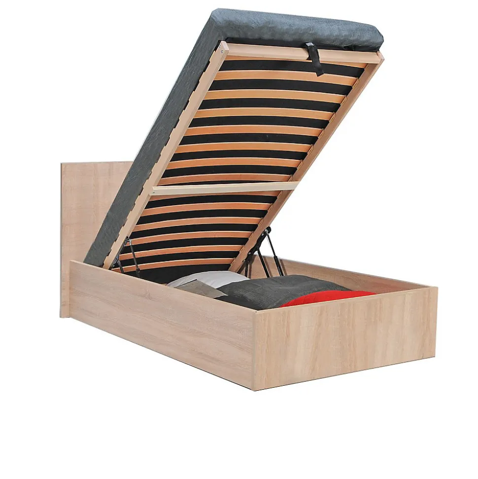 Optimisez la chambre grâce au lit . Le lit coffre est le lit idéal pour les petits espaces et les personnes en quête de plus de solutions de rangement pour la chambre. Avec son grand coffre de rangement sous le sommier permet un rangement supplémentaire spacieux pour stocker toutes vos affaires.Matériel:Structure en panneau de particulesSommiers à 14 lattes multiplisSection 52×8 mm.Poids maximum de matelas à utiliser : 20kgDimensions:Zone de couchage 90x190cmLongueur:196cmLargeur : 102cmHauteur : 33cmHauteur avec la tête de lit: 85cmATTENTION le matelas et la décoration ne sont pas comprise dans la livraison*Les couleurs réelles peuvent différer de ceux indiqué dans l’image en raison de la nature des paramètres de couleur de photographier et de moniteur.Support client et SAV en Français – Pas de livraison dans le DOM TOM et la Corse.**Attention la livraison est prévue au pied de l’immeuble ou de la maison et non à domicile.