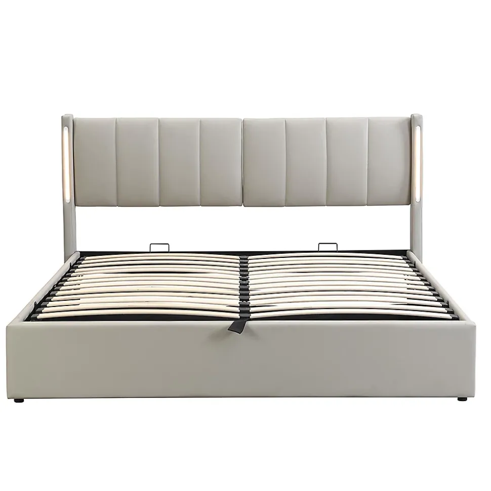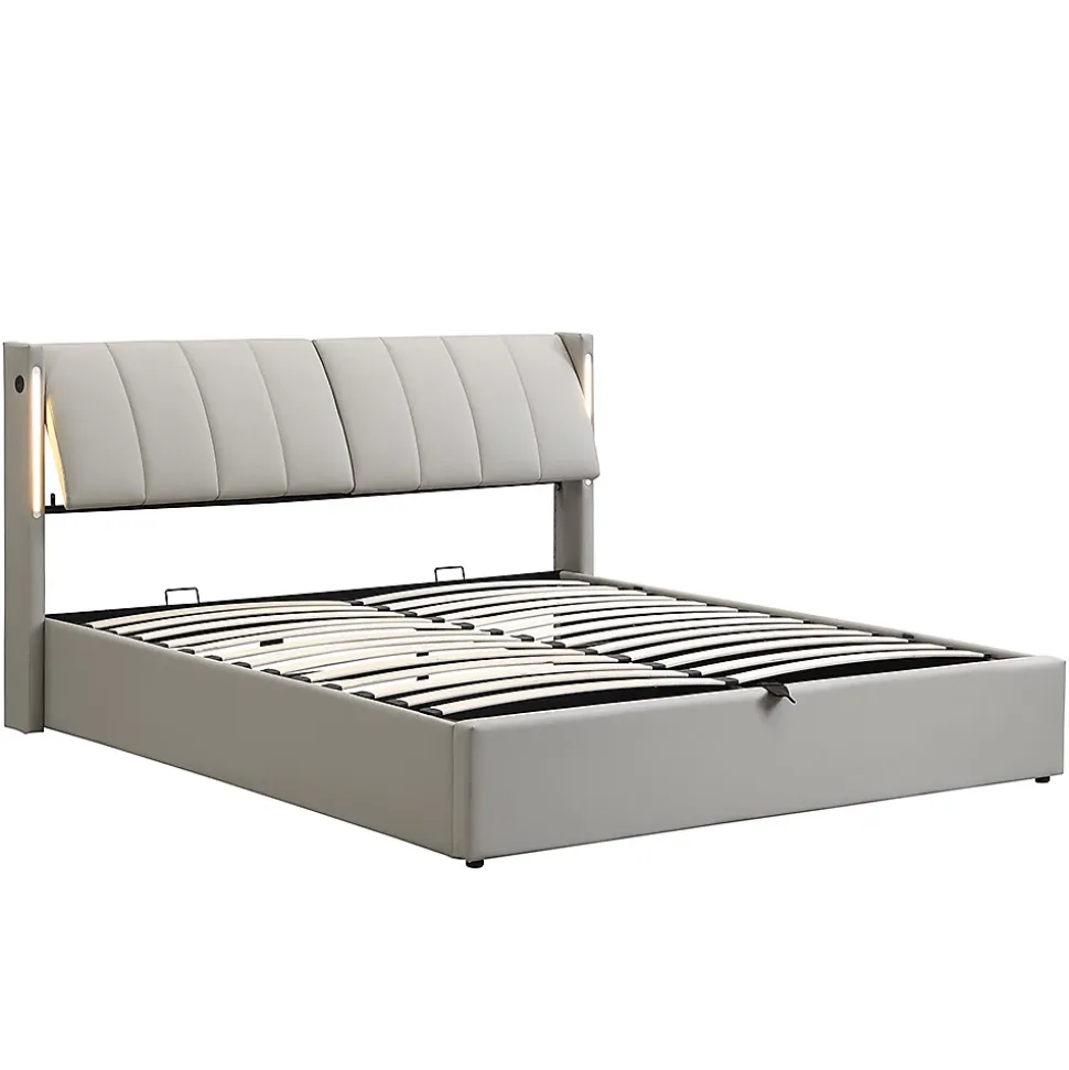 Design multifonctionnel – Ports USB intégrés, éclairage LED & dossier réglable en 3 positions pour un confort optimal. Contrôle intelligent – Lampe de chevet LED avec télécommande pour ajuster la luminosité & la fréquence de clignotement selon vos besoins. Imperméable & facile à entretenir – Revêtement en PU de haute qualité, résistant aux liquides & facile à nettoyer. Moderne & élégant – Design sophistiqué avec interfaces Type-C & LED, parfait pour un intérieur contemporain. Confort & stabilité – Inclinaison réglable de 0 à 30°, capacité de charge jusqu’à 300 kg, épaisseur de matelas recommandée : max. 28 cm.Détails du produit :Dimensions du lit : 140 x 190 cmMatériau : Revêtement en PUSommier à lattes : InclusMatelas : Non inclusRangement : Sous le litPoids : 44 kgCapacité de charge maximale : 300 kgAngle d’inclinaison : 0-30°Puissance LED : 4WÉpaisseur du matelas recommandée : Max. 28 cmRemarques :Une légère marge d’erreur (1-2 cm) est possible en raison des mesures manuelles.De légères différences de couleur peuvent apparaître en fonction des réglages de l’écran & de l’éclairage.Livré en 2 colis, qui peuvent arriver séparément.Pour toute question concernant l’installation ou l’utilisation, notre service client est à votre disposition.