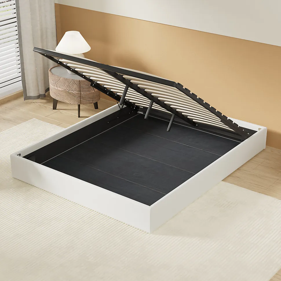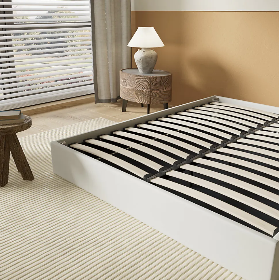 Lit Coffre 140 x 200 cm – Sommier à lattes en bois – Cadre en tissu blanc