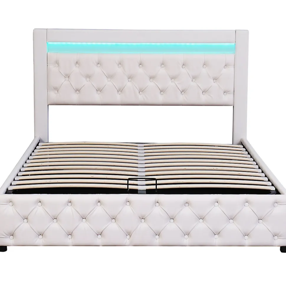 ▶ ▶ Détails ▶────────────────● Type de produit : Lit coffre● Dimensions du couchage : 140 × 190 cm (matelas non inclus)● Dimensions totales du produit : 200 × 142 × 100 cm● Couleur : Blanc● Revêtement : PU● Sommier : Sommier à lattes inclus● Espace de rangement : Coffre de rangement sous le lit● Éclairage : LED intégré● Charge maximale supportée : 220 kg● Poids total du produit : 43 kg● Condition de livraison : Démonté● Nombre de colis : 2► Remarques ►※ Les dimensions sont données à titre indicatif.※ Ce produit est livré en 2 colis, qui peuvent arriver séparément. Merci de votre patience.