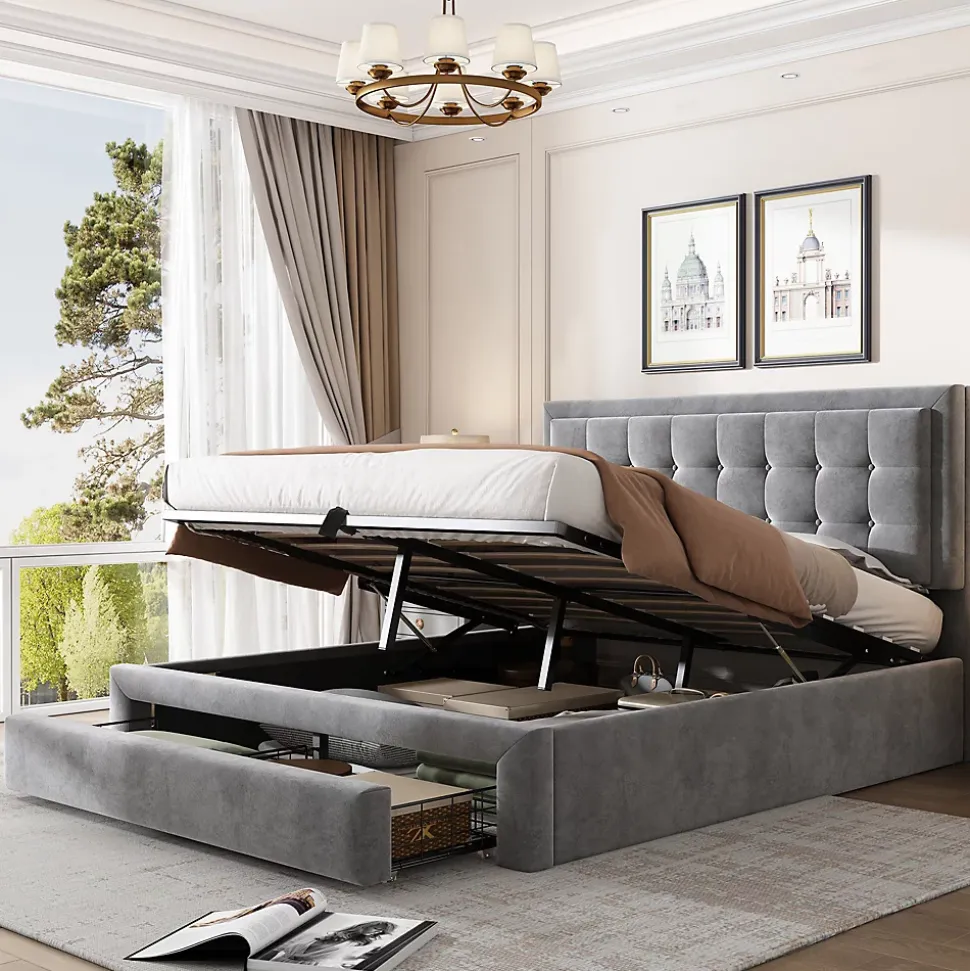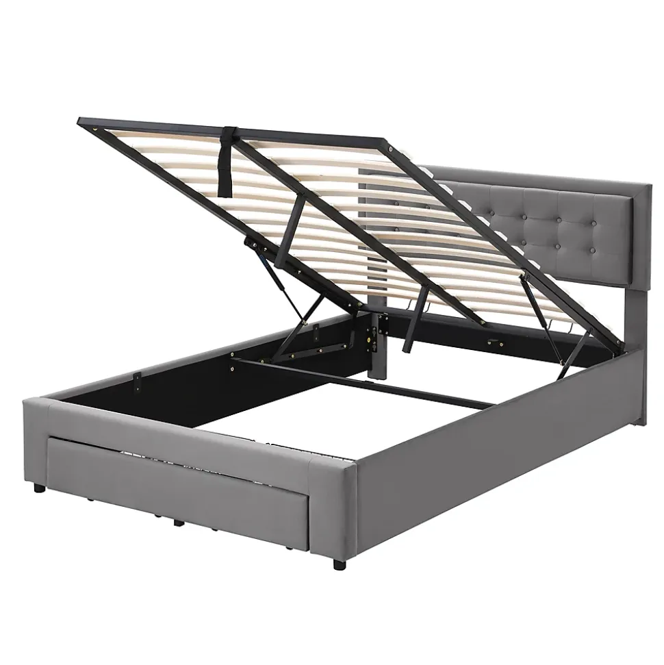 - 【Rangement Pratique et Efficace】 Ce lit est équipé d’un système de rangement puissant avec des barres hydrauliques et des tiroirs à mailles métalliques, permettant de stocker vos objets et de garder votre chambre propre et bien organisée tout en étant facile à nettoyer.