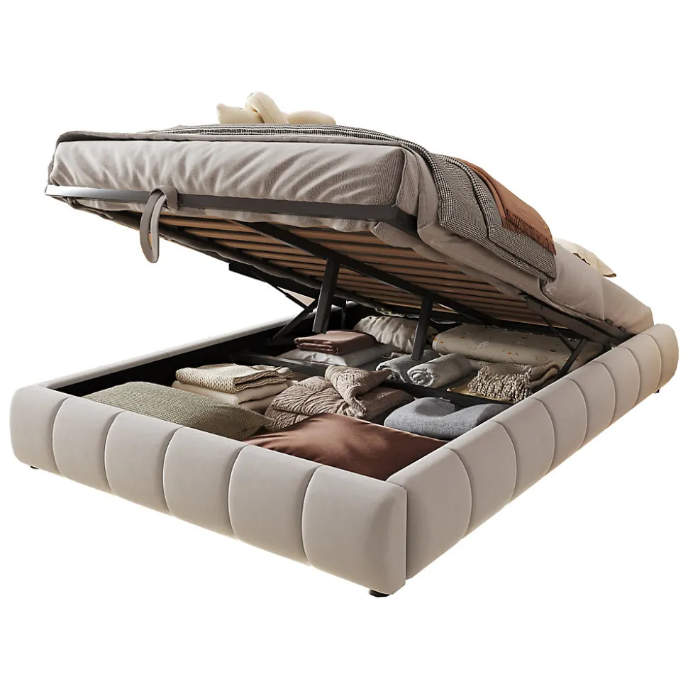 - 【Système de Levage Hydraulique】 Le sommier est équipé d’un système hydraulique permettant de soulever facilement le matelas pour accéder au grand espace de rangement. Idéal pour stocker de la literie, des vêtements saisonniers ou autres articles encombrants.