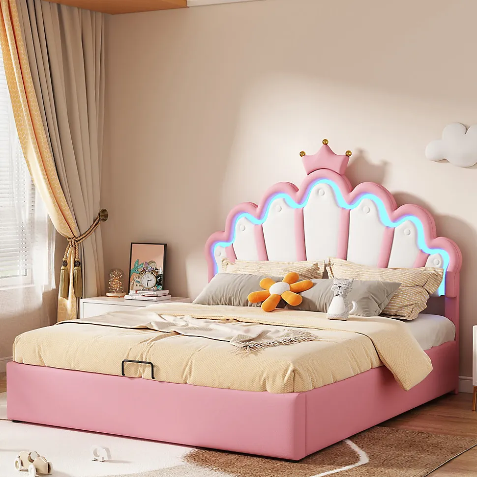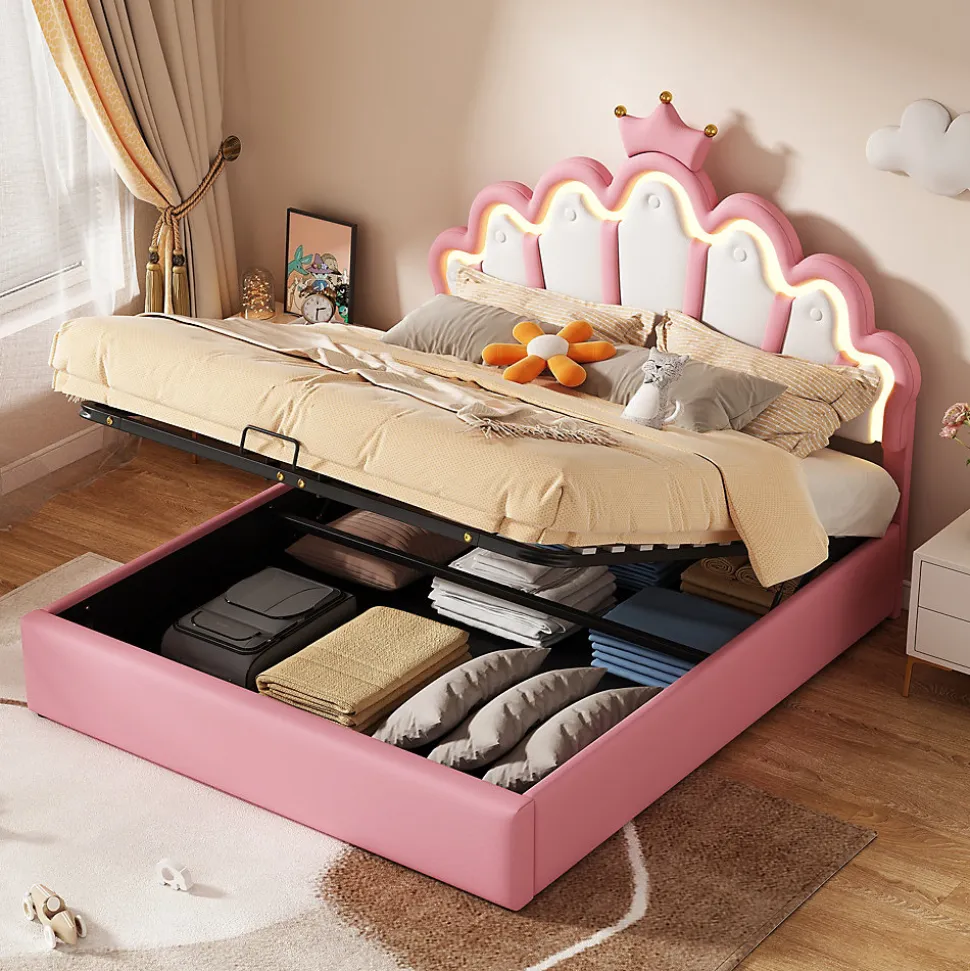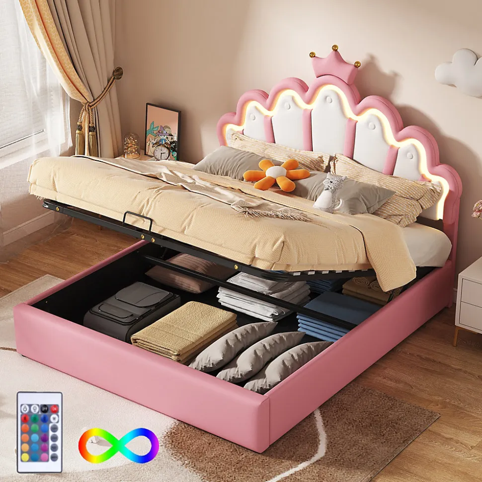 - 【Rangement Hydraulique Pratique】 Le cadre du lit se soulève facilement grâce au mécanisme hydraulique, offrant un espace de rangement généreux pour jouets, vêtements et accessoires, contribuant à garder la chambre organisée et dégagée.