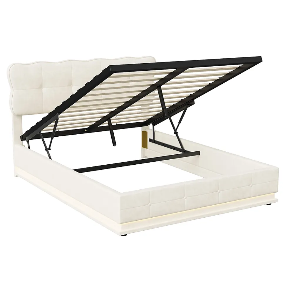 【Design Sophistiqué】: Offrez-vous une expérience luxueuse avec ce lit de rangement contemporain. Ce modèle allie une esthétique moderne, un système hydraulique innovant et un sommier à lattes confortable. Sa tête de lit comporte un dossier à fermeture éclair, fournissant un support douillet pour vos moments de lecture ou de relaxation.【Expérience Lumineuse avec LED】: Allez au-delà des lits ordinaires avec notre éclairage LED unique. Pensé pour révolutionner vos nuits, ce lit comprend une bande lumineuse multicolore et un mode musical, le tout contrôlable via une application mobile.Notez cependant qu’aucune musique ne peut être jouée.【lit rembourré】:Avec une surface recouverte de velours doux et une couleur beige apaisante, ce lit ajoute une touche de modernité et d’élégance à votre chambre. C’est le choix idéal pour ceux qui apprécient le confort supérieur et le style sophistiqué dans leur espace de sommeil.【Lit pratique avec rangement】: Grâce à son système de levage hydraulique double, ce lit offre un espace de rangement considérable sous le matelas,particulièrement adapté aux petites maisons ou appartements avec un espace limité, résolvant efficacement les problèmes de place dans les petits logements.Spécifications du produit :Dimensions (l x L x H) : 204.5×144.5/164.5×109.5 cm.Matériau : Velours + bois + métal.Couleur: BeigeMatelas applicable (matelas non inclus) : 140/160×200 cm.Sommier tapissier nécessaire: aucunPoids : 55 kg.Poids maximal supporté : 300 kg.Design unique : fonction de charge/Lumière LED