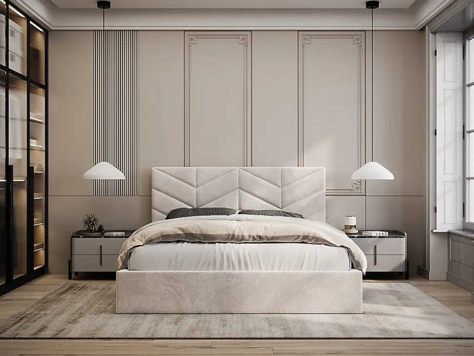 Avec son aspect élégant, sa tête de lit moelleuse, ainsi que son sommier coffre qui dissimule 2 compartiments, le lit JUSTANI incarne l’équilibre parfait entre confort, esthétique, et praticité. Son look s’harmonisera parfaitement à tout type d’intérieur, en apportant une touche chic à votre chambre !Caractéristiques Couleur (nuance) : Crème Matière (précision) : 100 % Polyester Structure : Bois, Panneau de particules, MDF Finition : Texturé Taille (couchage) : 160 x 200 cm Nombre de places : 2 places Garnissage : Mousse polyuréthane Densité (garnissage) : 23 kg/m³ Sans matelas Avec sommier Type de sommier : Cadre à lattes Nombre de lattes : 24 lattes Gamme : Good for Planet Produit : Fabriqué en Europe Charge maximale supportée : 180 kg À monter soi-même : Ce lit est compatible avec tous les matelas 160 x 200 cmDimensions Longueur : 170 cm Hauteur : 106 cm Profondeur : 213 cm Hauteur de couchage : 29 cm Hauteur des pieds : 0.5 cm Coffre 1 : L161 x P100 x H14 cm Coffre 2 : L161 x P100,5 x H14 cmLivraisonLors de la livraison, il est conseillé de vérifier que le bon nombre de colis a été livré.ColisColis n°1 : Longueur 173 cm, Largeur 110 cm, Hauteur 10 cm, Poids 25 kg. Colis n°2 : Longueur 205 cm, Largeur 31 cm, Hauteur 19 cm, Poids 27 kg. Colis n°3 : Longueur 202 cm, Largeur 26 cm, Hauteur 12 cm, Poids 15 kg.