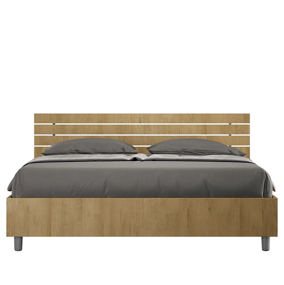 Lit double Ankel 160×190 avec tête de lit et lit en panneaux de mélamine, particulièrement polyvalent et facilement combinable avec n’importe quel style d’ameublement.Le lit double Ankel 160×190 se caractérise par un style minimal et essentiel grâce aux surfaces simples et linéaires.La combinaison du style et des matériaux utilisés pour la structure confère à la pièce une atmosphère chaleureuse et accueillante, typique du bois.Lit fourni avec sommier à rangement, prévu pour un matelas 160×190 cm – Matelas non inclusProduit ItyhomeFabriqué en ItalieDimensions lit : L.167 P.204 H.90 cmHauteur des pieds : 12 cmHauteur du lit : 26 cmHauteur du filet depuis le sol : 38 cmDimensions intérieures du conteneur : L.163 P.194 H