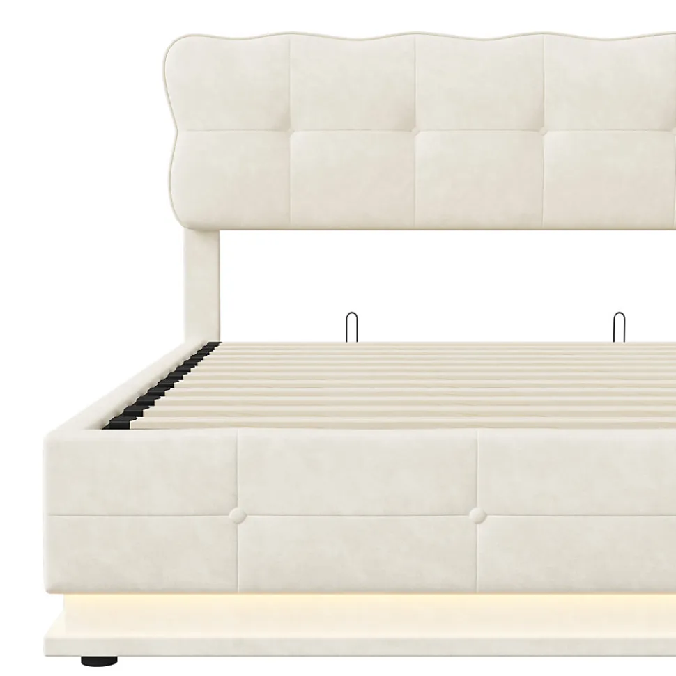 Éclairage LED : Les LED ajoutent une touche moderne à votre chambre à coucher. À l’aide de la télécommande, vous pouvez changer les couleurs et la luminosité depuis votre confortable fauteuil, ajustant ainsi l’ambiance à votre goût.Bien fabriqué : le cadre est en bois massif et en métal, pouvant supporter jusqu’à 300 kilogrammes, vous garantissant un sommeil paisible. Le matériau doux du lit offre non seulement une sensation de confort, mais réduit également efficacement les risques de blessures causées par des angles et des bords pointus pendant son utilisation par vous ou votre famille.Solide et durable : Ce lit de rangement est équipé d’un mécanisme hydraulique à double levage facile à utiliser, fabriqué en velours de haute qualité, et comprend une poutre de soutien centrale robuste ainsi qu’un cadre rembourré.Conception de rangemen : Ce lit dispose d’une fonction de rangement puissante. La conception de la barre de traction hydraulique vous permet de soulever facilement la surface du lit et de ranger des oreillers, des couvertures, des vêtements hors saison et de petits objets dans le coffre de lit, offrant ainsi un espace de rangement pratique.SpécificationsDimensions totales (l x L x H) : 164 x 204 x 110 cmCharge maximale : 300 kgMatelas inclus : NonMatériau de la plaque : Bois + Velours + MétalMatelas applicable (matelas non inclus) : 160 x 200 cm