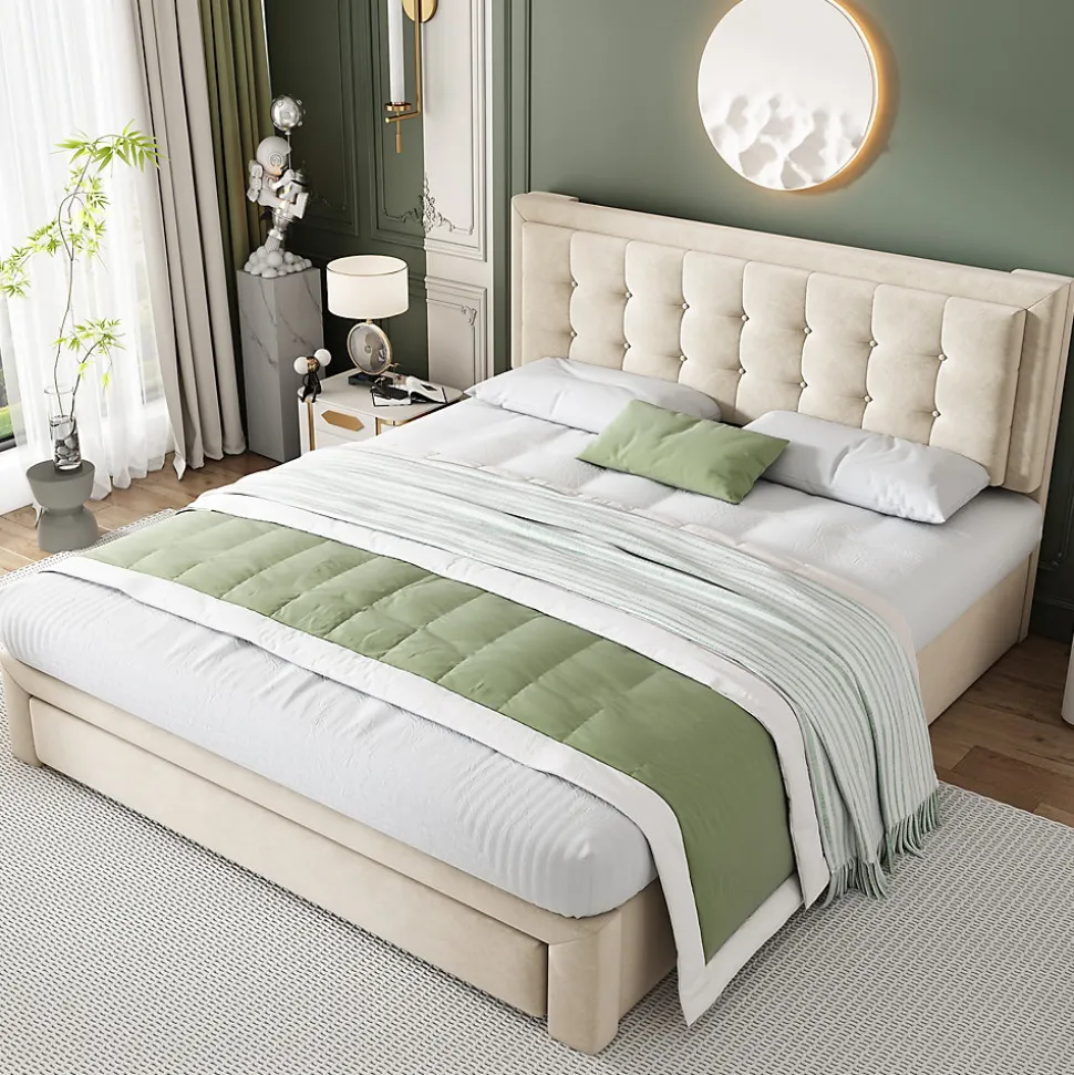 - 【Confort de la Tête de Lit】 La tête de lit, épaisse et rembourrée, offre un excellent soutien lorsque vous vous adossez pour lire ou vous détendre, vous apportant ainsi un confort optimal pendant vos moments de relaxation.