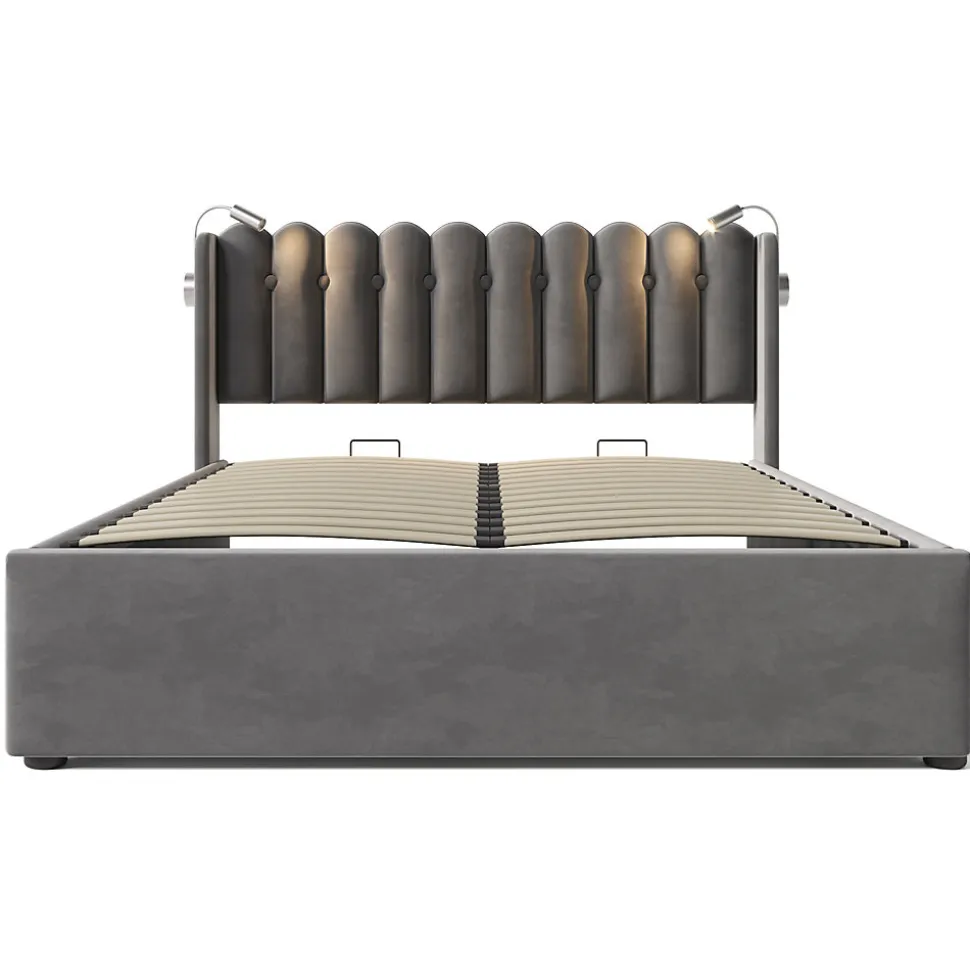 ▶ ▶ Détails ▶────────────────● Dimensions totales : 165 x 206 x 103 cm ( l x L x H)● Design unique : Lit LED avec USB● Surface de couchage : 160 x 200 cm (Sans matelas)● Couleur : Gris● Matériau : Velours● Poids maximal supporté : 300 kg / 660 LBS● Hauteur du dossier : 25 cm● Type de charge : 2 USB● Montage nécessaire : Oui● Contenu du colis : Cadre de lit + USB + Lampe de lecture● Poids brut/net (kg) : 48,29 / 44● Nombre de colis : 2► Remarques ►※ Ce produit sera livré en 2 colis. Ils peuvent ne pas arriver en même temps. Merci de patienter.※ En raison des mesures manuelles, une erreur de 2-3 cm peut se produire.※ En raison des conditions d’éclairage, des différences de couleur peuvent apparaître entre l’image du produit et le produit réel. Veuillez vous référer au produit reçu.※ Si vous avez des questions pendant l’installation, n’hésitez pas à nous contacter rapidement.